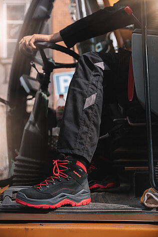 Sohlen: Elten verwendet spezielle Laufsohlen aus PU (Polyurethan) und Gummi, die rutschfest, öl- und benzinresistent sowie antistatisch sind.